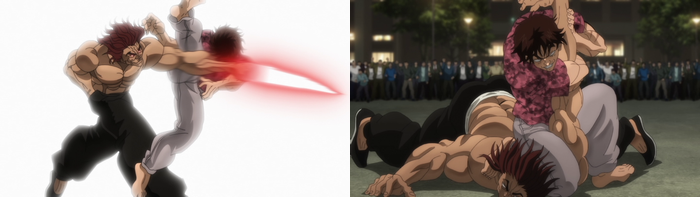 こちらは原作ママの虎王パートを効率的に再現。本家「刃牙」シリーズは動きの細かさよりも迫力を重視した作りであり、同じ虎王であっても(アニメ的な)思想がまるっきり異なる。そういった点を見比べるのも面白いだろう。